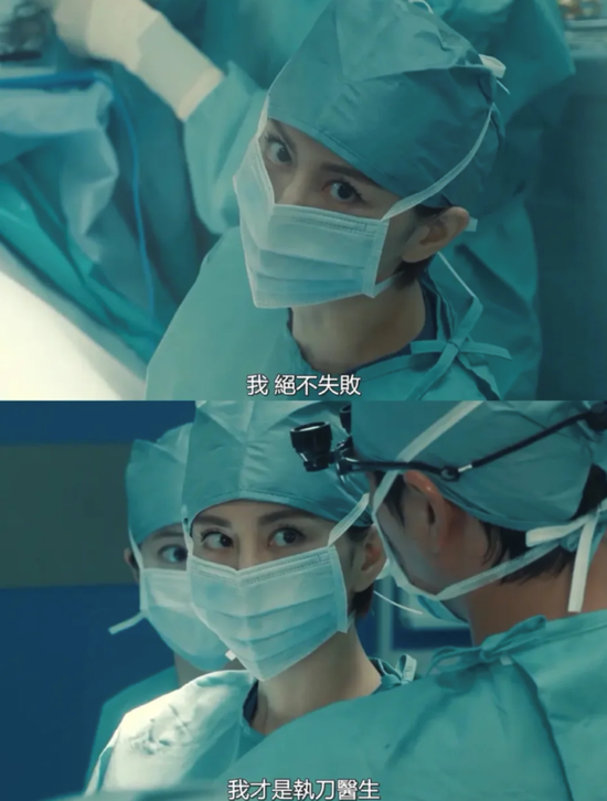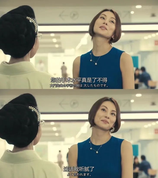 干净利落的短发,描绘得较有锋芒的弯眉、拉长的眼线、卷翘浓密的睫毛,还原本身唇色的口红,再配上未知子自信张扬的态度,少有的医疗型大女主。