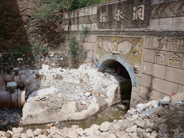 在赵湾村村支书的指引下,岳胜机来到水库大坝西端,看见一个水电站的发电设备枢纽就建在大坝的输水洞中,输水洞直径约2米,洞口水泥墙里镶着两根粗钢管,严重影响了输水洞的出水速度。