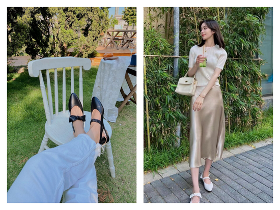 相比起之前的Y2k风厚底鞋,芭蕾舞鞋简单实穿又优雅,舒适度还高,柔软的鞋底和设计真的太适合需要每天通勤上班的职场女性了。