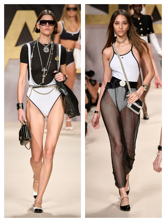 Chanel 22春夏大秀就出现了芭蕾舞鞋+玛丽珍鞋的混合款,大胆搭配泳衣或镂空长裙,别有一番优雅精致。