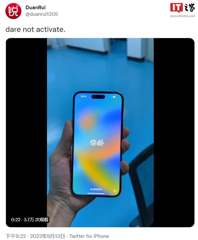 此外,国内也有其他一些用户提前拿到了 iPhone 14 系列真机,但都需要等待正式发售后激活。