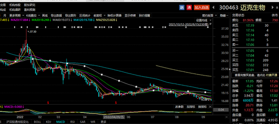 不过,在内外部扰动、新冠分子产品销售价格降低背景下,迈克生物股价震荡下跌,8月18日解禁日收盘时,股价为19.03元/股,相比于定增发行价格跌超32%。