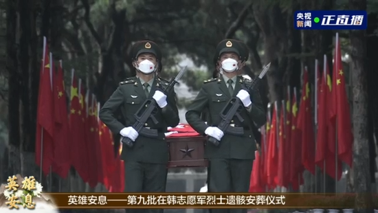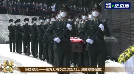 9月17日上午,第九批在韩中国人民志愿军烈士遗骸安葬仪式在沈阳抗美援朝烈士陵园举行,88名为国战斗牺牲在异国他乡的志愿军英烈70多年后在祖国的大地上安息。