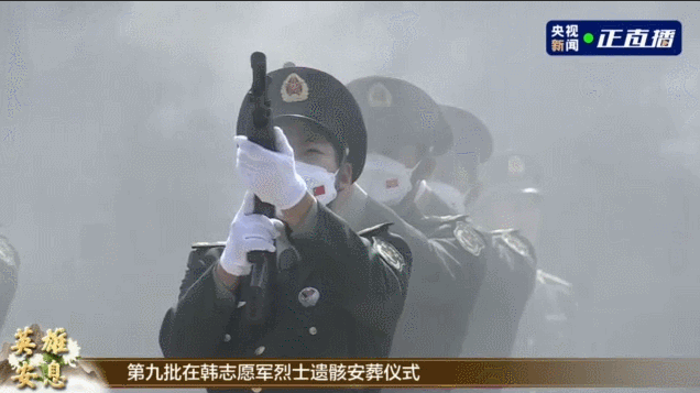 全体人员向志愿军烈士三鞠躬,27名礼兵鸣枪12响,向英烈致以崇高的敬意。据了解,2014年以来,累计共有913位在韩志愿军烈士遗骸在这里安息。
