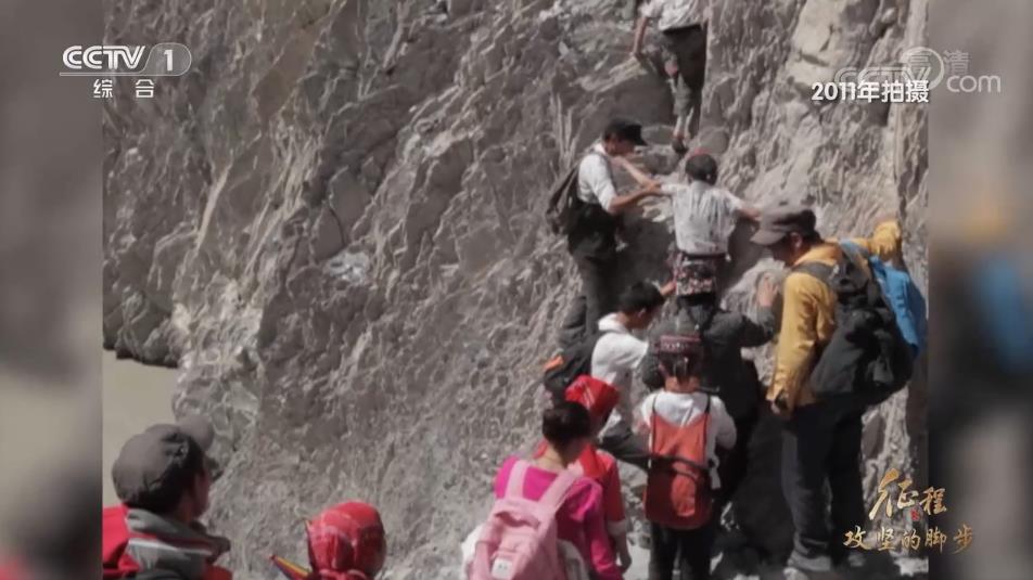 十年风雨侵蚀,路已被冲毁,在悬崖上留下一道深深的印迹。十年前,孩子们的愿望朴素得令人心疼。