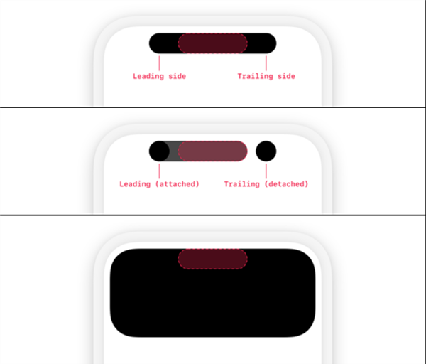 据设计指南显示,苹果提供了灵动岛三种展示样式,分别是最小化、最大化和紧凑状态,这将是以后灵动岛最常见的展现方式。