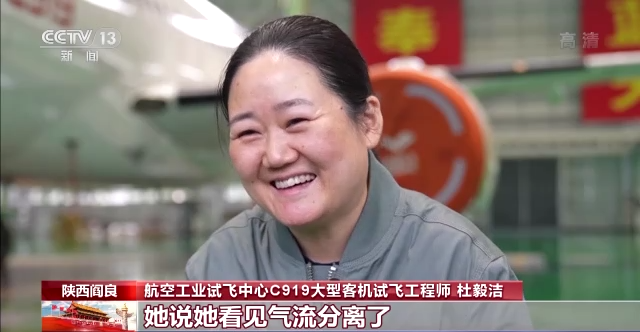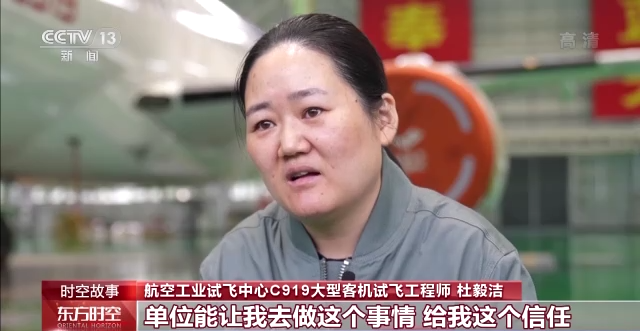 航空工业试飞中心C919大型客机试飞工程师 杜毅洁:我觉得非常幸运,也很感谢2019年的时候,我38岁,我觉得我很普通,而且是一个中年女性的角色,单位能让我去做这个事情,给我信任,包括飞行机组给我这种信任,给我这种帮助。