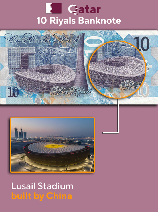 11. 卡塔尔 10里亚尔纸币 卢赛尔体育场 由中国承建