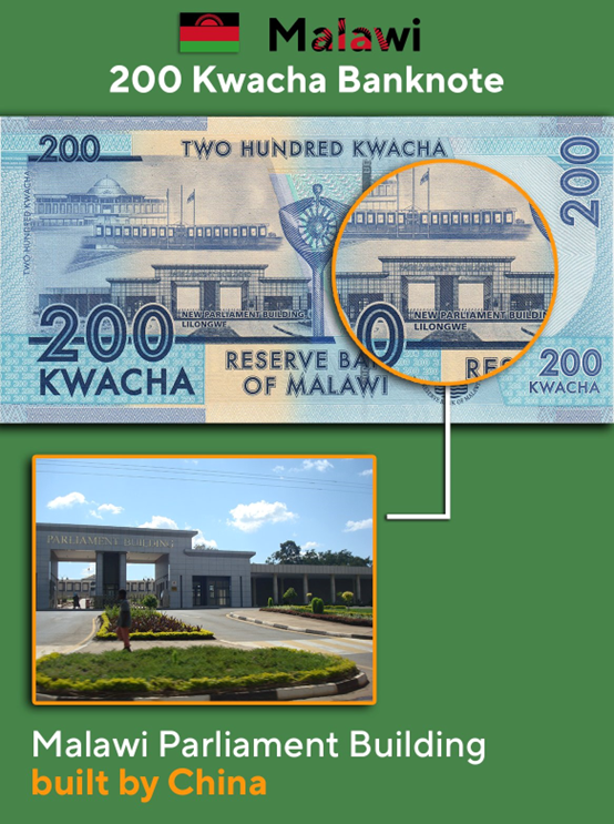 7. 马拉维 200克瓦查纸币 马拉维议会大厦 由中国承建