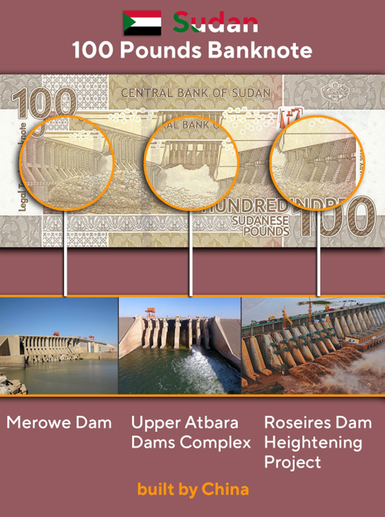 9. 苏丹 100磅纸币 麦洛维大坝、上阿特巴拉水利枢纽、罗塞雷斯大坝加高工程 由中国承建