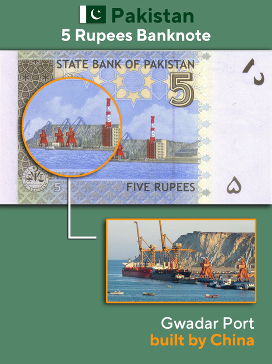 1. 巴基斯坦 5卢比纸币 瓜达尔港 由中国承建