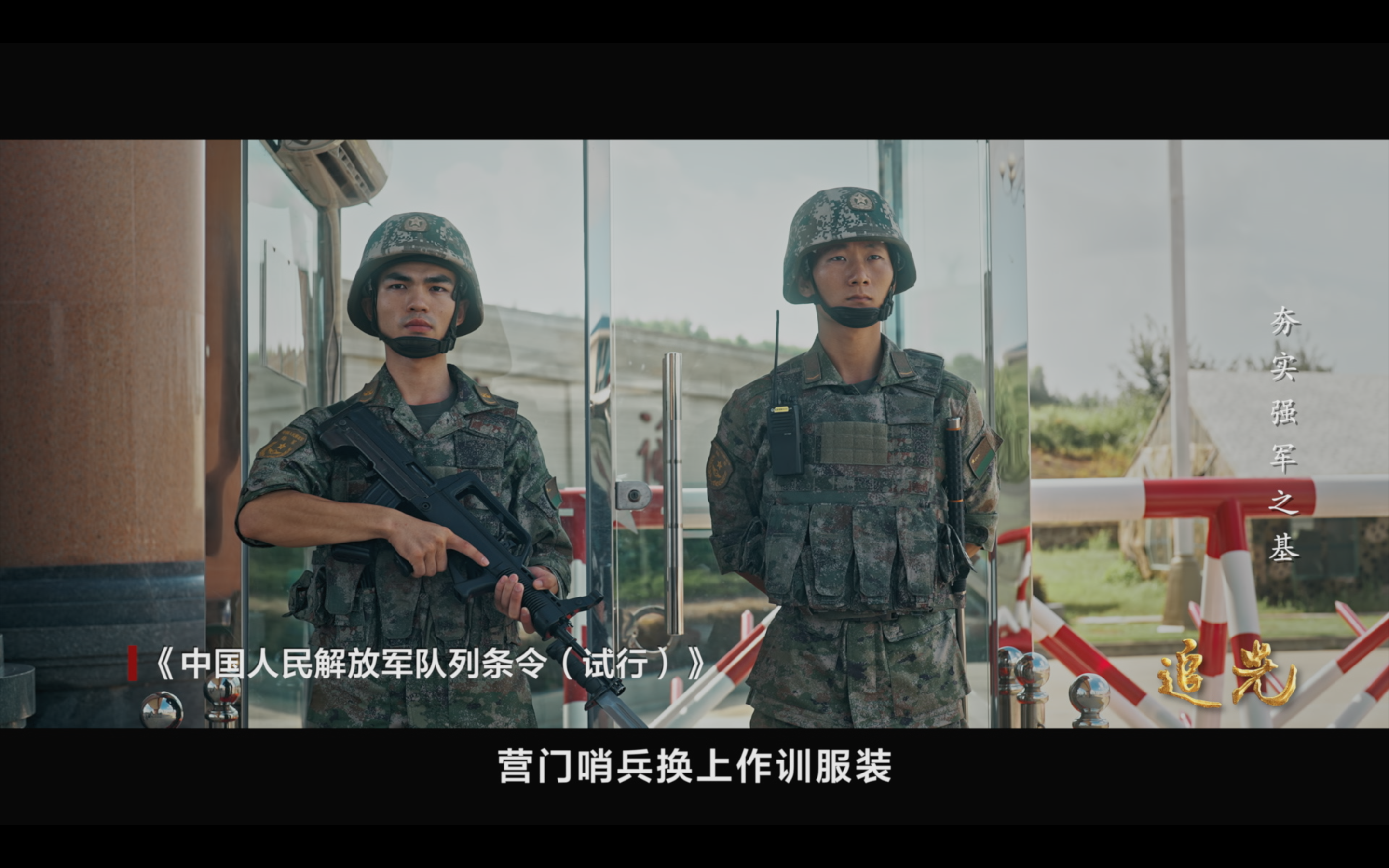 营门哨兵换上作训服装,营区规划突出实战导向,时刻保持战斗氛围,红色血脉在军中代代相传。