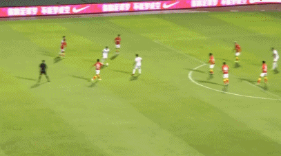 第24分钟,罗德里格前场左侧拿球强突,变向内切传中到前点,杨意林门前抢点伸脚一垫,球越过张健智钻进远端,梅州客家1-0取得领先广州队。