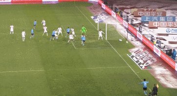 第37分钟,大连人队进攻,董岩鋒禁区外远射攻门,劳列斯头球一做击中横梁弹出。