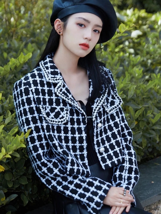 海狸这种格纹粗花呢则是有着一种灵气,和上面的学院派格纹比起来,同样是富家千金的贵气,她这身更偏向“大人”一些,尤其是内搭里隐隐约约的透视,更是让风格最大化。