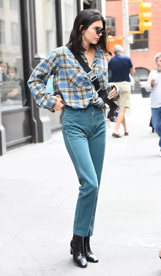 小个子女生可以考虑这种短款的格纹外套,搭配高腰裤和高跟短靴,优化比例和时髦感都能完成。
