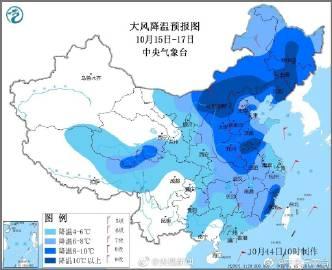 中央气象台预计,明天起到17日,一股较强冷空气将影响中东部地区,带来4~8℃的降温,其中,华北北部、东北地区中南部降温幅度可达10~12℃。注意添衣保暖!