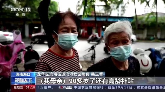 海南海口龙华区滨海街道滨港社区居民 韩玉香:政策也越来越照顾我们这些老人,我母亲90多岁了还有高龄补贴。