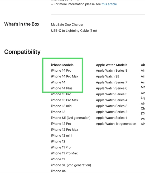 虽然 iPhone 14 Pro 仍然可以使用 MagSafe Duo 进行充电,但该设备并没有平放在充电器上,并且它的一部分会稍微抬起。那些手机壳在相机区域有较大凸起的人可能需要先取下手机壳,然后再将 iPhone 放在 MagSafe Duo 充电器上。