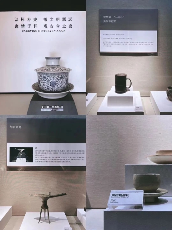 杯子按照朝代时间陈列,商周至今藏品非常丰富,也能看到国外的一部分玻璃器皿等。