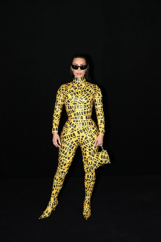 今年3月,金姐以胶带装出席了巴黎世家2022秋冬时装秀,上到脖颈下到脚踝,全身都缠满了胶带,看着有点让人窒息惹。