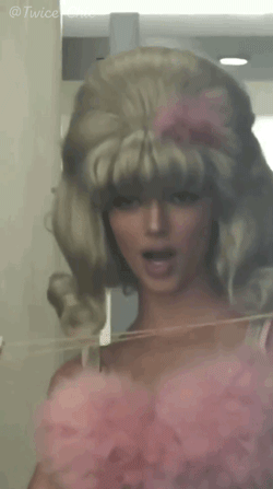 2018年她换装成了《王牌大贱谍》里面的粉红芭比机器人,造型非常接近原版。