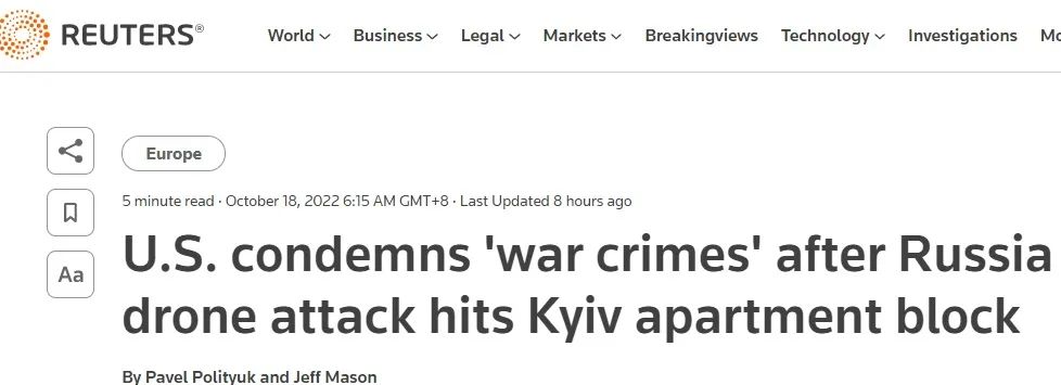 俄军对基辅建筑发起无人机攻击后,美国谴责俄“战争罪行”。图片来源:路透社报道截图