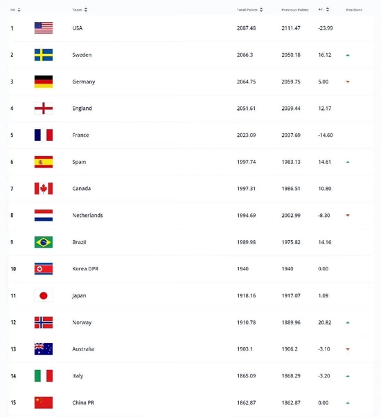 据悉,女足世界杯分档,是根据国际足联最新排名决定的,32支球队分成4档,每档8支球队,即分成8个小组。根据排名,中国女足排在第15位,成为第二档球队。