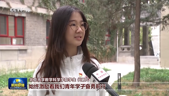 北京大学数学科学学院学生 代旸凡:总书记的关怀对于我们青年来说是一笔用之不竭的宝贵财富,始终激励着我们青年学子奋勇前行。我们应当积极发挥青春的能动力和创造力,将个人的学习奋斗汇入国家发展的洪流,乘新时代的春风,在祖国的万里长空放飞青春梦想。