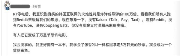 10 月 15 号,大韩民国的四千万网民们好像突然进入了“ 石器时代 ”,交流全靠吼( 聊天软件崩了 ),恰饭全靠以物易物( 支付软件用不了了 )。