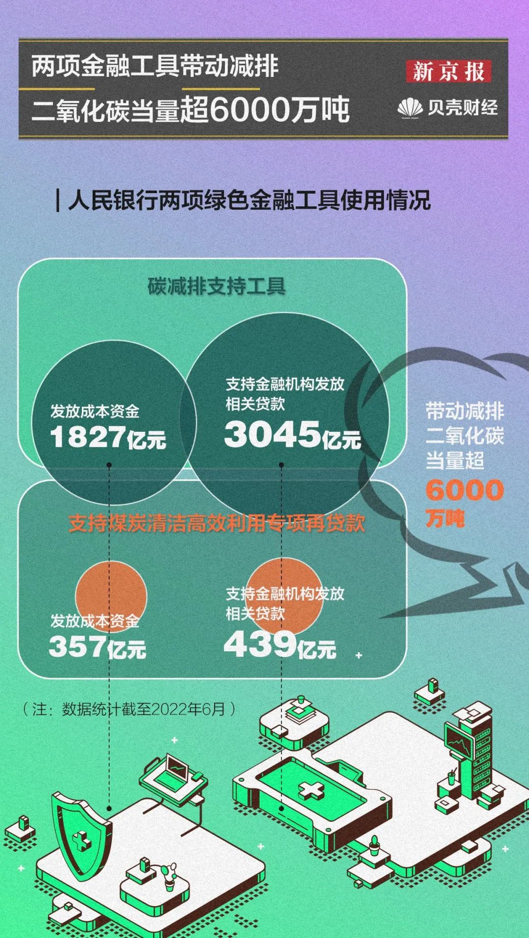 2021年,中国人民银行接连创设碳减排支持工具和支持煤炭清洁高效利用专项再贷款两项工具,分别向金融机构发放低成本资金1827亿元和357亿元,支持金融机构共发放贷款3484亿元,从而带动减排二氧化碳当量超6000万吨。