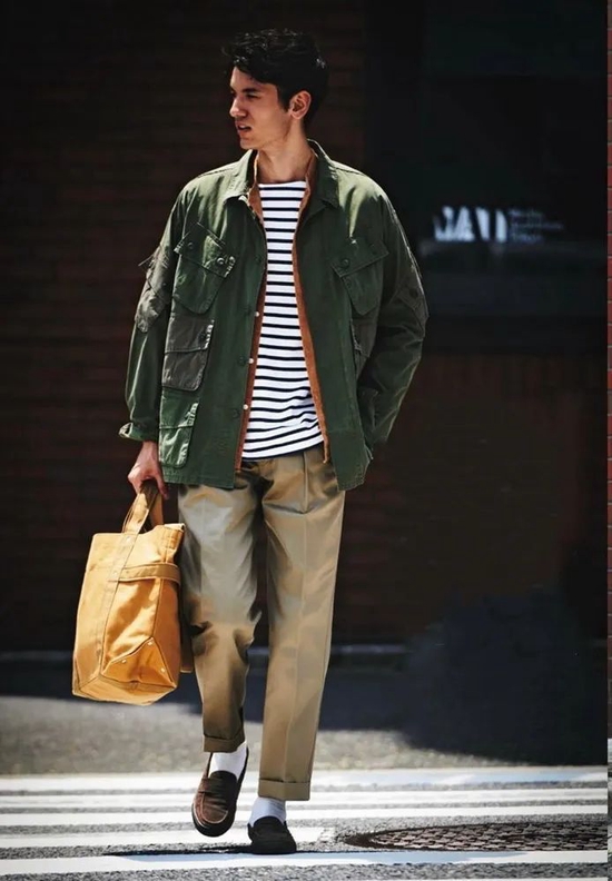 低饱和度的卡其色系穿搭会给人温柔且没有攻击力的感觉。