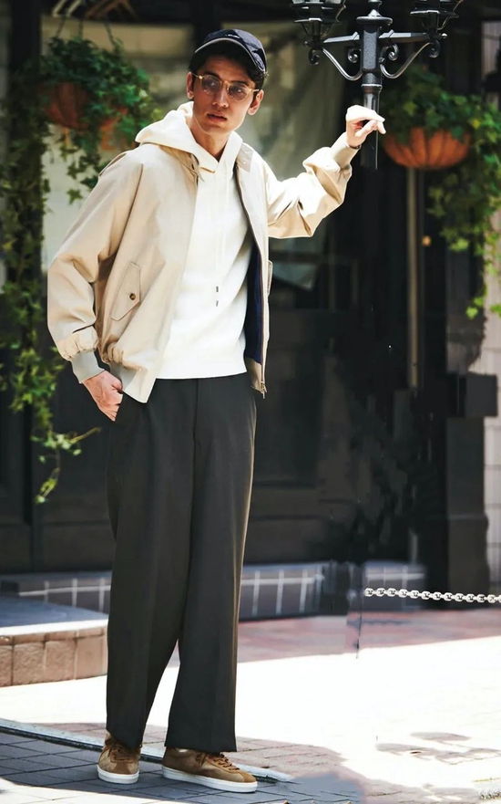 只要把握上身长阔+下身宽松的特点,球鞋就是人类友好,一切百搭。