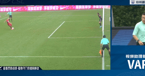 第9分钟,王鹏禁区内放倒卡里略,主裁判判罚点球,阿德里安主罚点球被邵璞亮神勇扑出。但沈寅豪在观看VAR后判定邵璞亮扑救前提前移动,点球重罚,卡里略主罚命中,河南嵩山龙门1-0领先沧州雄狮!