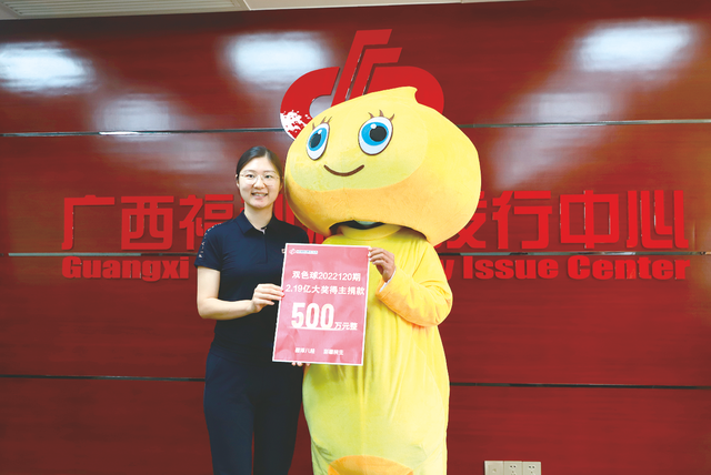 10月24日上午,李先生前往广西福彩中心兑奖。办理完兑奖手续,李先生换上广西福彩吉祥物福豆主题的头套、服装,“全副武装”地兑换奖金并和见证这一喜事的媒体记者、工作人员合影留念。最后,李先生还决定从奖金中捐出500万元,委托广西福彩中心用于公益事业。