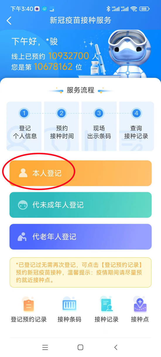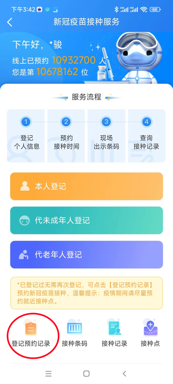 首先进入健康云首页,点击新冠疫苗接种(同上),选择代老年人登记,在下方选择愿意接种,填写代老年人登记的信息,确认信息后选择提交,点击立即预约。