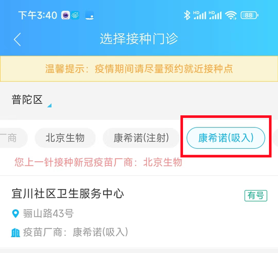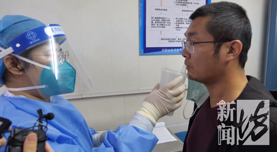 和注射式新冠疫苗接种一样,完成信息核对、流调、预检和登记后,工作人员引导邓阿姨进入专门开设的雾化吸入接种区。