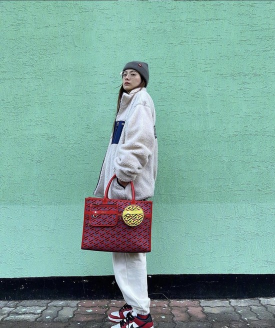 或者用亮色包包点亮整个造型,也是快速get吸睛点的方法。选好色系搭配,看起来就不会突兀,或者用尽量和身上某部分的穿搭进行颜色呼应,看起来会更精致舒服。