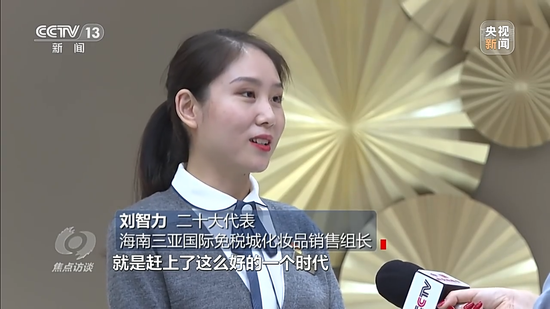 二十大代表 海南三亚国际免税城化妆品销售组长 刘智力:这一次参加了大会,现场聆听了总书记的报告,我觉得自己要做的事情更多了,刚好回来就赶上海口国际免税城的开业,是海南自贸港建设的一件大事。