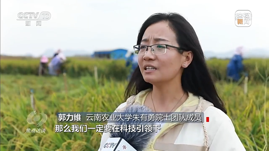 云南农业大学朱有勇院士团队成员 郭力维:习近平总书记提出来的我们解决吃饭问题,根本出路还是在科技。我们一定要在科技引领下去进行标准化、规范化种植,让水稻上山这个项目进行标准化、规范化示范推广,让老百姓能够获得高产优质的水稻。