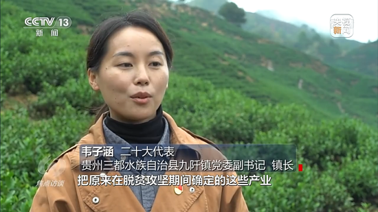 二十大代表 贵州三都水族自治县九阡镇党委副书记 镇长韦子涵:接下来我们会继续把原来在脱贫攻坚期间确定的这些产业给巩固好。
