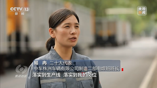 二十大代表 中车株洲车辆有限公司制造二部电焊班班长易冉:这些年我们国家的轨道交通装备制造从弱到强,从当年引进国外技术到现在自主创新研发,成为大国重器,为中国经济高质量发展提供了坚实保障,落实到生产线,落实到我的岗位就是每一条焊缝都高质量完成。