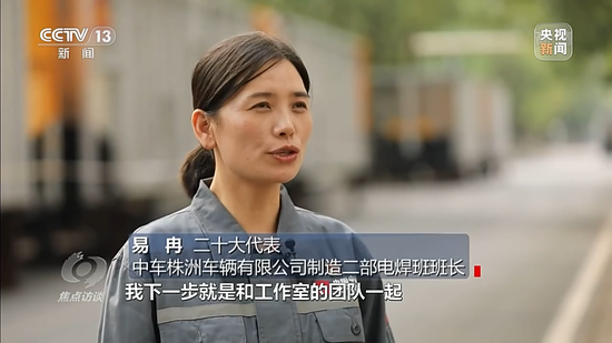 二十大代表 中车株洲车辆有限公司制造二部电焊班班长易冉:我下一步就是要和工作室团队一起抓好焊接技术攻关,着力提高全要素生产率,推动产品品质有效提升,量稳定增长。