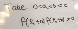 为什么这么说呢?因为随便一个ρn,从ρn到ρn+c之间,他一定没有零点。而ρn+a和ρn+b一定在这段之间,因为f是连续函数,所以他们的乘积一定是大于等于0的。