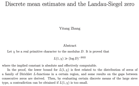 换句话说,这是目前关于朗道-西格尔零点猜想问题上,已证结论和待证的“终极目标”之间,距离最近的一次。